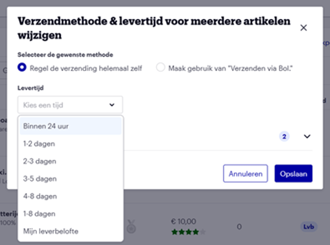 If you prefer to work with Excel, you can also change your delivery time in bulk via Excel. You can find the exact steps here.