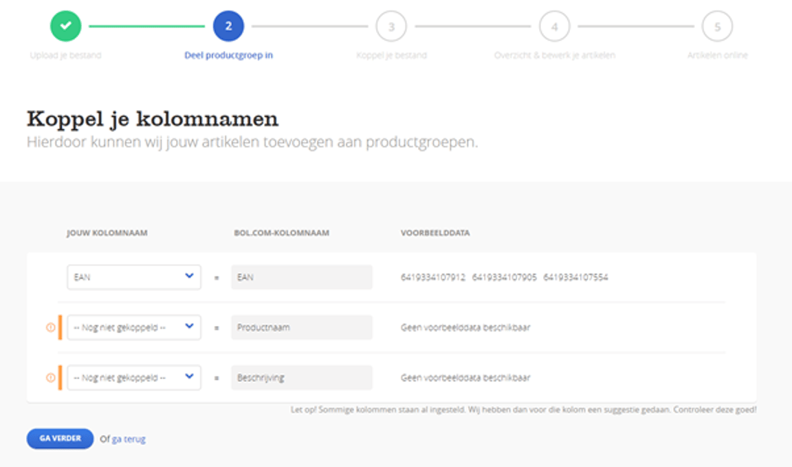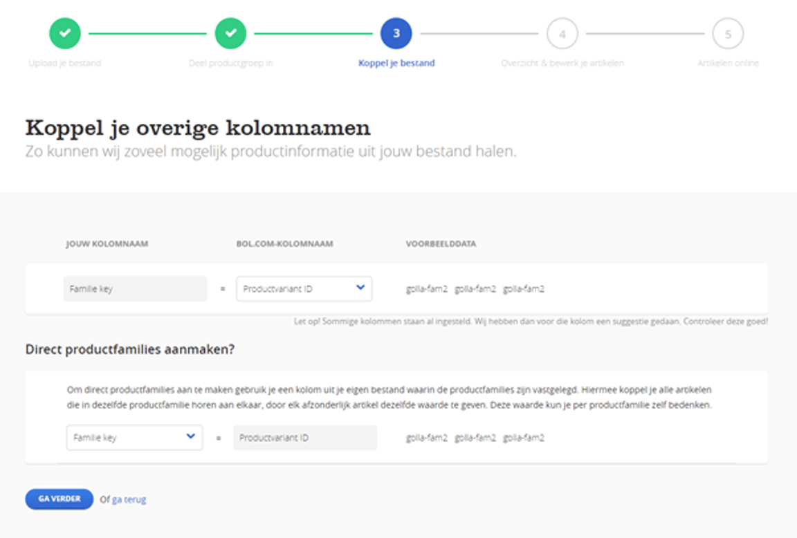 Link your columns with ours in step 2