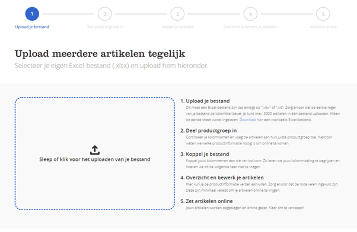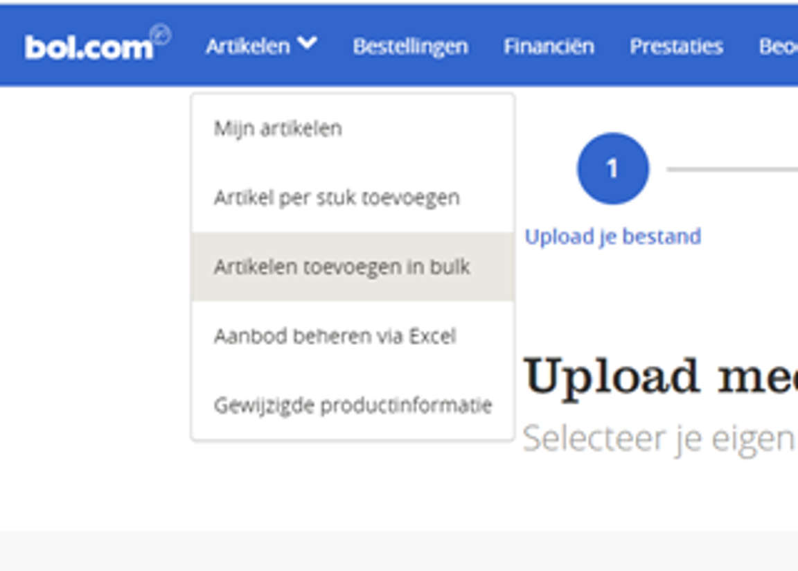 In the seller account menu, click 'Add items in bulk'